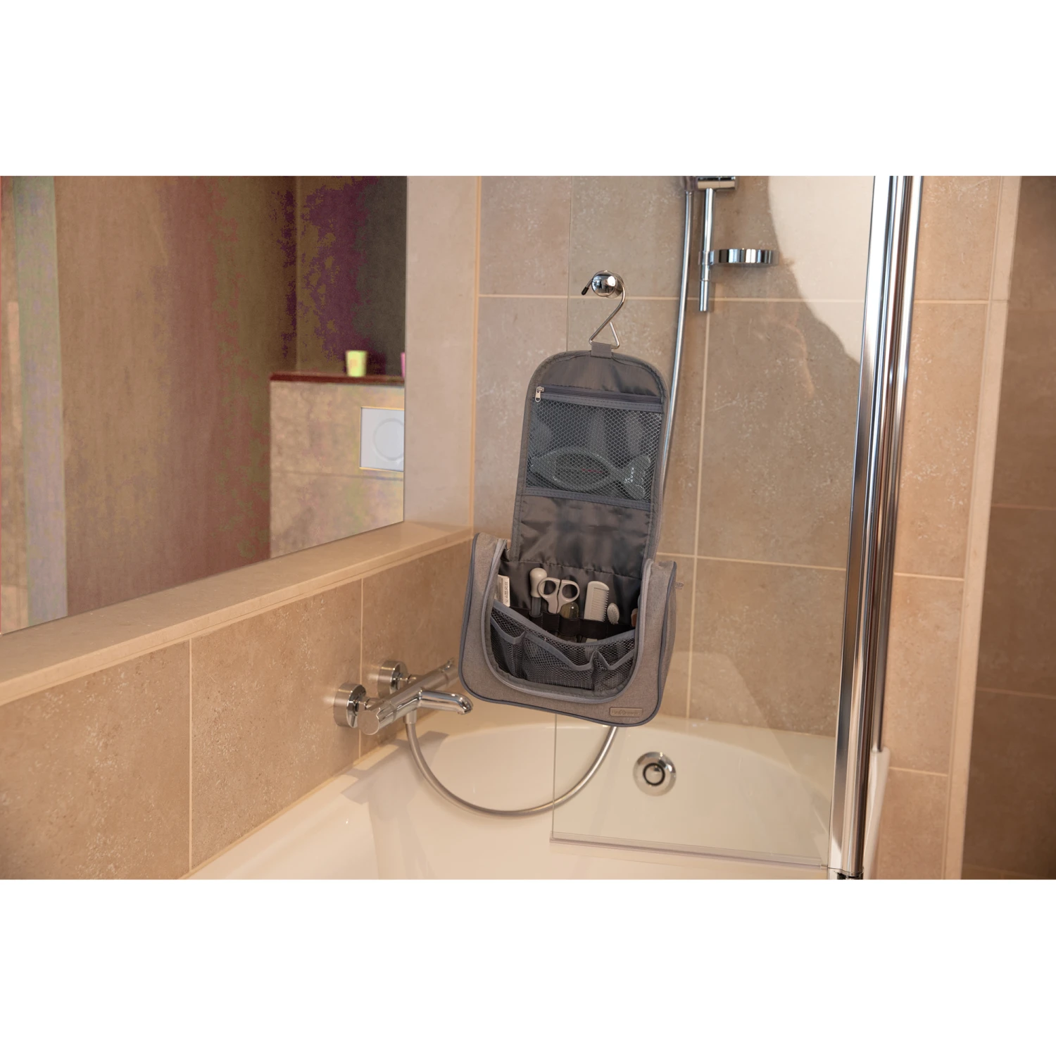 De plus, il reste encore assez de place pour pouvoir ranger le shampoing (ou tout autre produit) de votre petit quand vous partez en voyage.