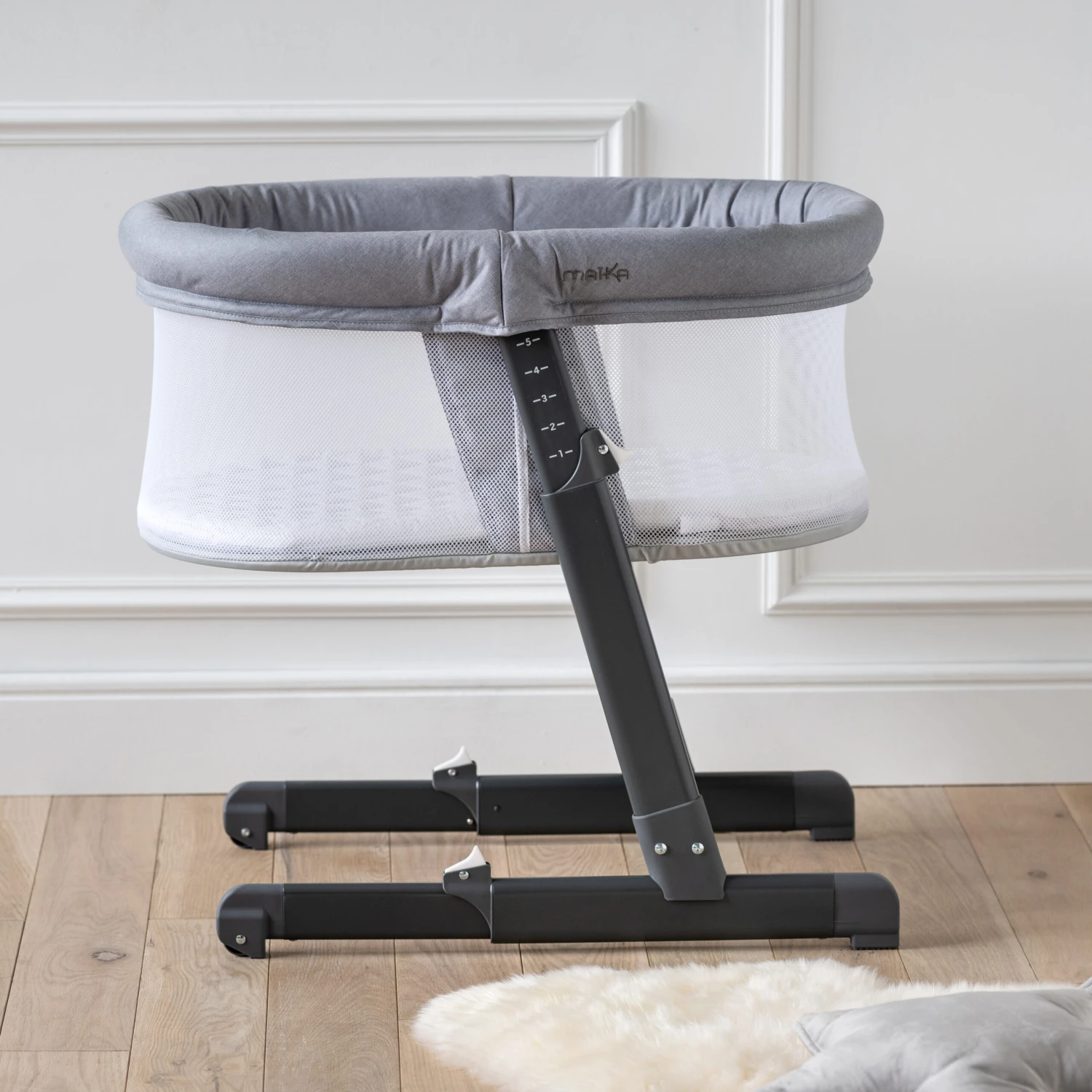 Le berceau Delta Maika est idéal pour les premiers mois de bébé ! En effet, grâce à sa proximité vous pourrez veiller plus facilement sur lui qui alterne rapidement entre sommeil et éveil. Grâce aux roues à l’avant vous pourrez le garder proche de vous et le déplacer facilement où bon vous semble, que ce soit dans sa chambre, la vôtre, ou pour la sieste dans le salon. De plus, sa hauteur ajustable sur 5 niveaux grâce à un bouton et des parois conçues en maille filet transparente vous permettront de vérifier aisément si bébé dort profondément, en toute sécurité. Bébé aussi sera apaisé en voyant ses parents à travers le filet, ce qui l’aidera à s’endormir.