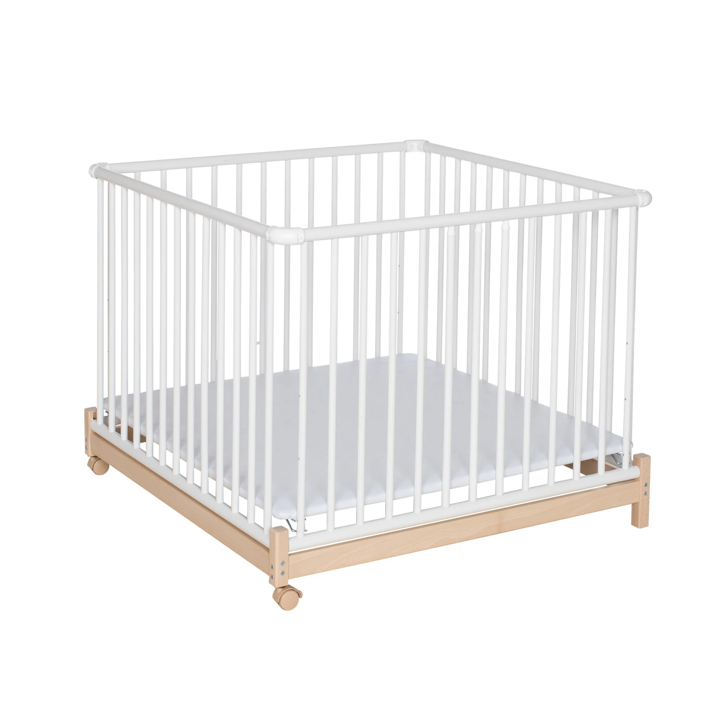 - 3 barreaux amovibles permettent Ă l’enfant, lorsqu’il grandit, de faire de son parc une aire de jeux d’oĂą il peut rentrer et sortir comme il le souhaite