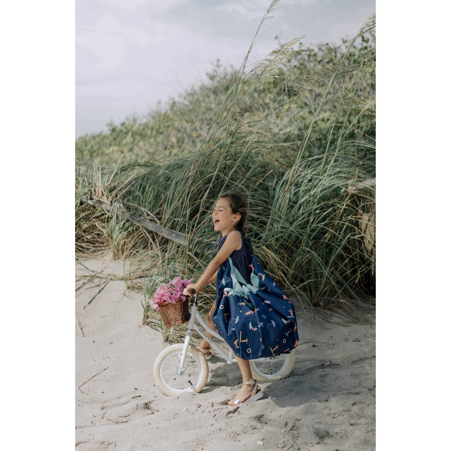 Il est composé d’une doublure et d’une bandoulière pour simplifier le déplacement. Avec ceci, c’est terminé le nettoyage et le séchage de tous les jouets avant de rentrer. C’est aussi la couverture idéale pour les sorties en famille.