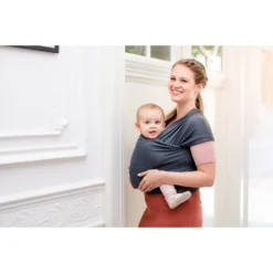 Écharpe De Portage Extensible Tricot-Slen Bambou Bio Smokey Grey De Babylonia