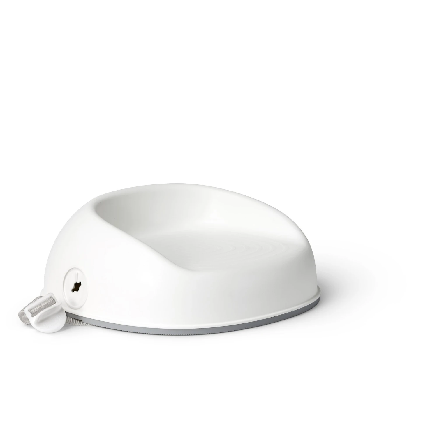 La base caoutchoutée sous le rehausseur le maintient fermement sur la chaise.