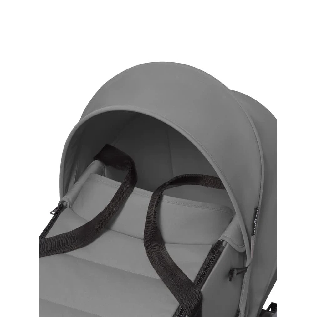 La coque et la capote ont été pensées pour laisser l’air circuler librement. Grâce à sa légèreté incroyable, vous pourrez la porter facilement et l’installer sur le cadre de la poussette quand vous décidez de partir en balade.